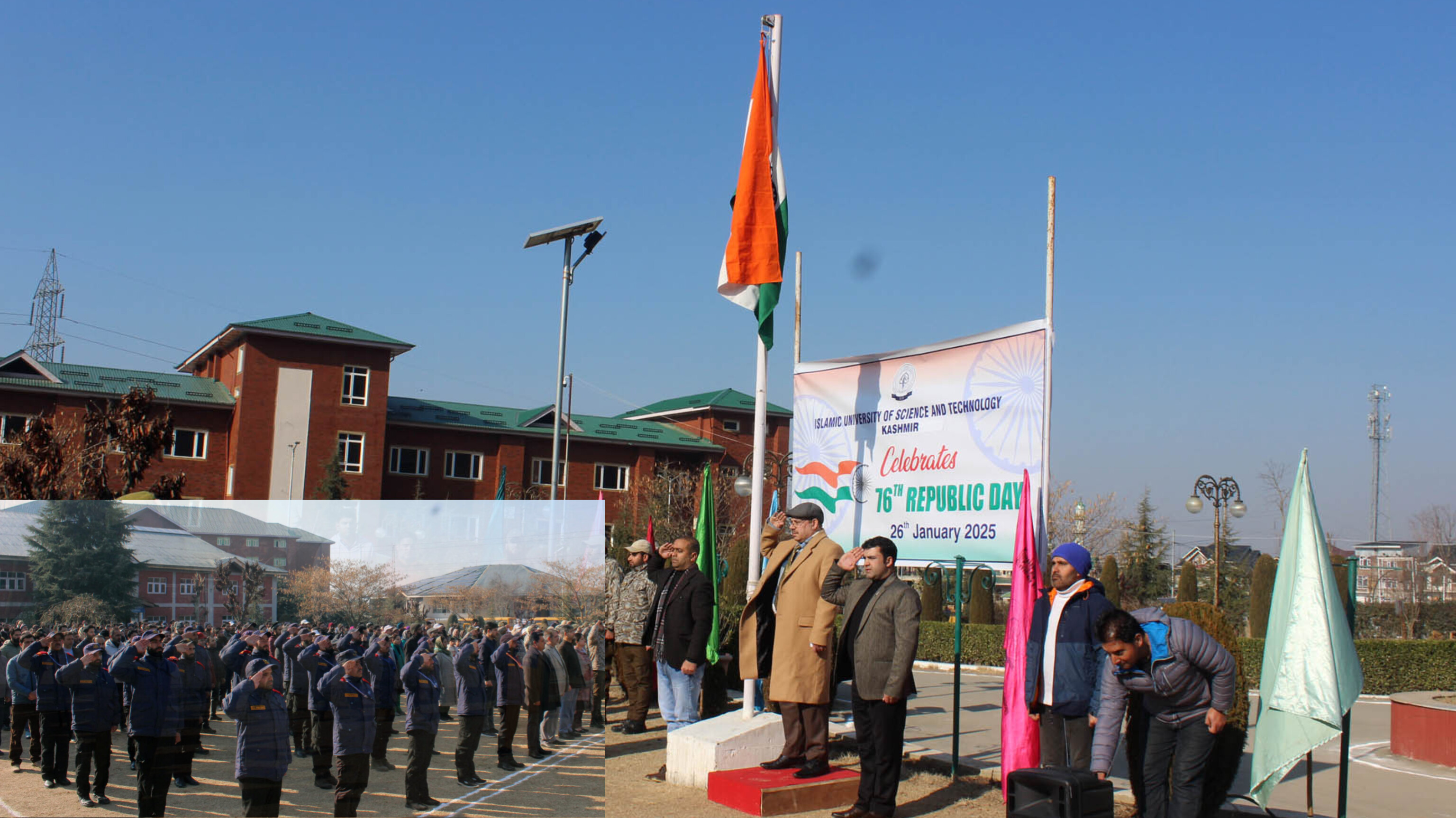 Srinagar Jan 26: Vice Chancellor Islamic University of Science and Technology (IUST) Prof Shakil Ahmad Romshoo on Sunday presided over the ceremony and unfurled the National Flag on eve of 76th Republic Day celebrations.