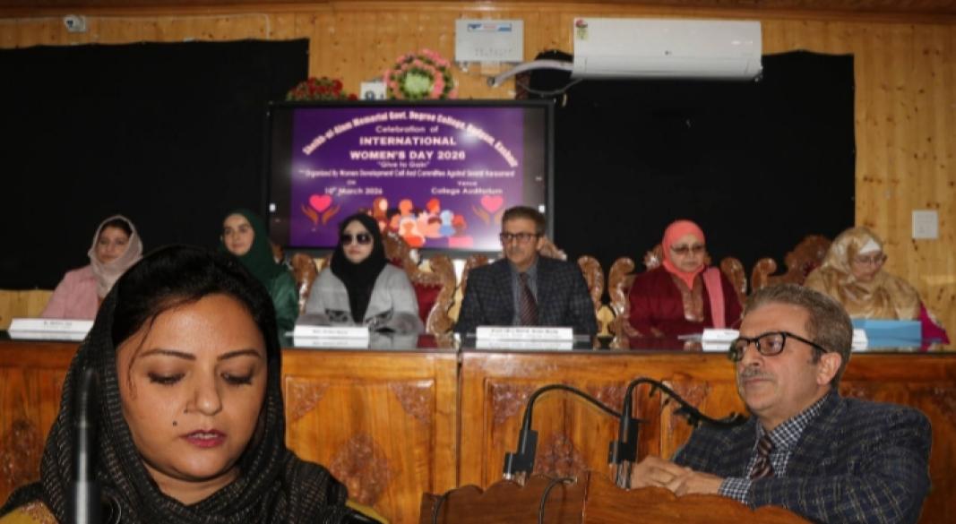 Srinagar, March 14: Government Sheikh Ul Alam Memorial (SAM) Degree College Budgam this week celebrated International Women’s Day. The programme was organised by the Women’s Development Cell in collaboration with the CASH (Committee Against Sexual Harassment) of the College The event was organised to celebrate the achievements and contributions of women across various spheres of life, and to promote awareness on gender equality and women’s empowerment. The programme began with a welcome address by Dr. Nuzhat Nasreen, Associate Professor (Education), who provided an insightful overview of the occasion and emphasized the importance of observing International Women’s Day as a means to empower women and promote equal opportunities for them in all spheres of life. Principal of the College, Prof. (Dr) Mohammad Amin Malik delivered the presidential address, highlighting the importance of equality, dignity and justice for women. He discussed how women were traditionally perceived as homemakers and how, over time, socio-cultural systems evolved into a patriarchal structure in which women were regarded primarily as child-bearing entities, resulting in their roles becoming increasingly restricted. Dr. Malik quoted a famous Kashmiri proverb "mout gobur gouv mukhtahaar te ar kour gayi tabardar," which means “A mad son is like pearl necklace while an accomplished daughter is like a wood cutter.” He reffered a hadith, mentioning the Prophet's (PBUH) emphasis on women's equality and autonomy, saying women have their own domain where they shouldn't be forced to change. He said that today, women are excelling and breaking barriers in competitive exams, academics, sports, and entrepreneurship. He further stressed the need to overcome patriarchal attitudes and combat domestic violence through quality education, strict legal measures, and sustained awareness programs. The programme featured insightful presentations by three speakers including Tasneem Akhter (Retd. Programmer Officer ICDS) who discussed women's empowerment and education's role in shaping a progressive society, sharing her personal story of achieving empowerment through her career experiences. Another speaker Advocate Sehar Nazir shared her powerful story of surviving an acid attack, undergoing prolonged medical treatment, and completing her degree despite the challenges. She highlighted how her experience transformed her life positively and discussed the obstacles women face today, emphasizing the need for collective efforts to achieve gender equality. Another speaker, Mir Abroo Mushtaq, a district psychiatric counselor, Budgam, emphasized women's leadership potential and community impact, inspiring students to aim high and excel. The speeches were informative and inspirational, leaving a positive impact on the audience. Earlier, assistant professor Sociology, Dr. Shehla Rashid who was moderatimg the event, introduced the programme to the gathering and highlighted the 2026 theme “Give to Gain,” and briefly shared the college’s gender-parity practices, noting the strong female student presence and equal participation encouraged for women faculty. Dr. Ruhee Jan, Senior Assistant Professor (Chemistry) & Convener CASH, delivered a heartfelt vote of thanks, expressing gratitude to the Principal, speakers, faculty, organising team, and students for their support and participation. The celebration ended up with a powerful message: empowering women is key to building a progressive and inclusive society. Prof. Saima Gazanfar and Dr Zahwa Jan served as the rapporteurs of the programme.