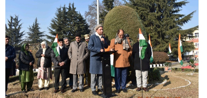 The ceremony was led by the Vice Chancellor, Prof. Nazir Ahmad Ganai, who unfurled the national flag at the occasion.