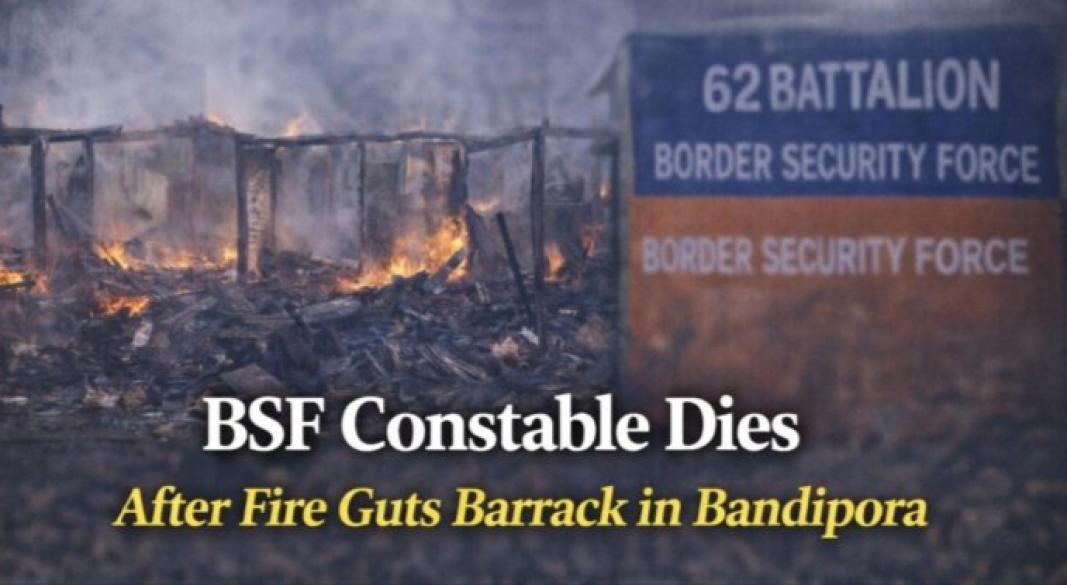 Bandipora, Jan 12: A Border Security Force (BSF) constable died after a fire broke out in a barrack of the 62nd Battalion camp in north Kashmir’s Bandipora district late last night, officials said.