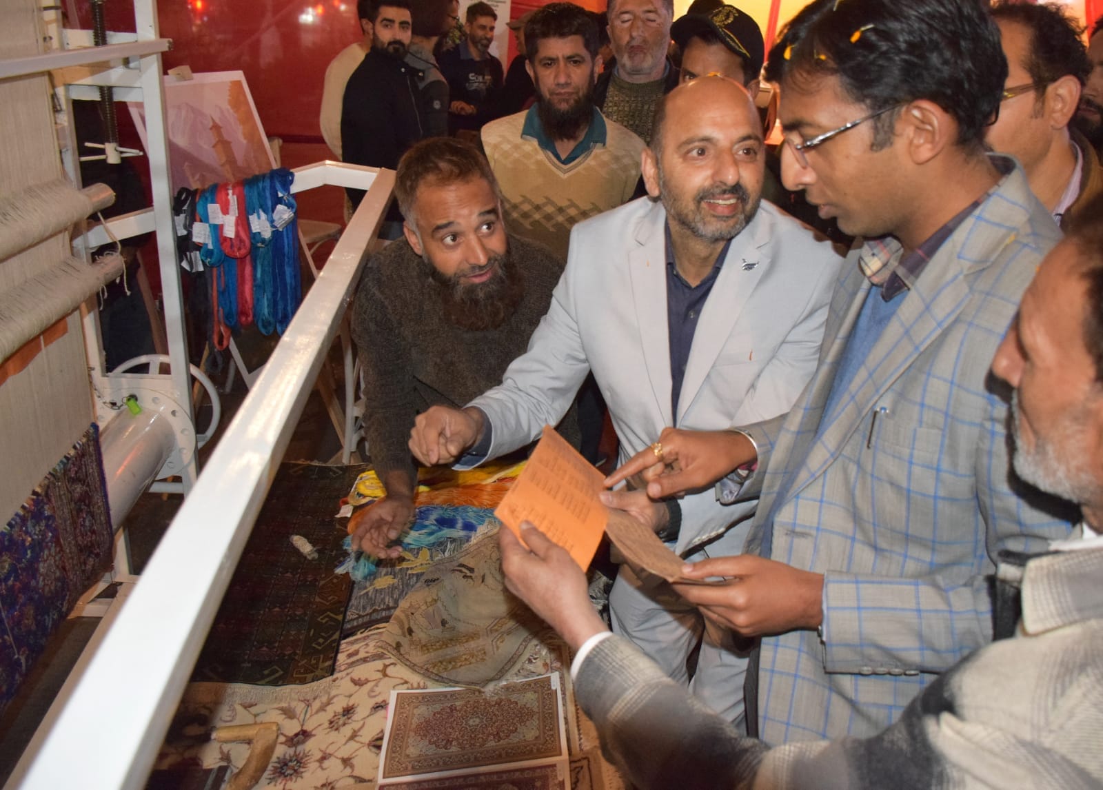 The Divisional Commissioner went around the stalls and interacted with National and UT Level Awardees representing the rich handicraft heritage of Kashmir, including Papier Mache, Sozni, Kani Weaving, Walnut Wood Carving, Copperware, Namda, Kangri Making and Hand-Knotted Carpets.