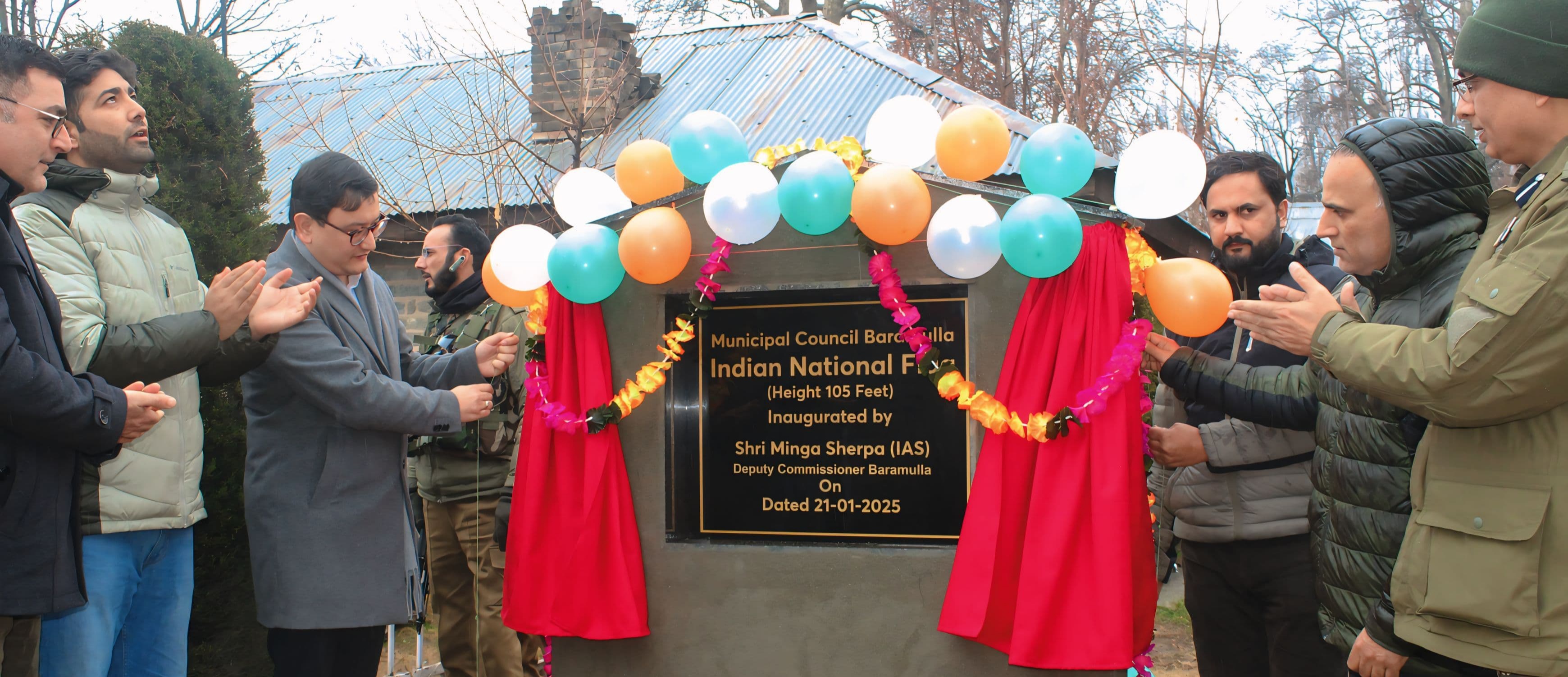 Baramulla, Jan 21: Deputy Commissioner Baramulla Minga Sherpa on Tuesday inaugurated a 105-feet-high Indian National Flag at the DC Office premises.