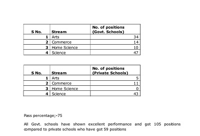 As many as 103308 students appeared in the class 12th exams, out of which more than 77,000 successfully cleared the exams with a pass percentage of 74.83 percent.