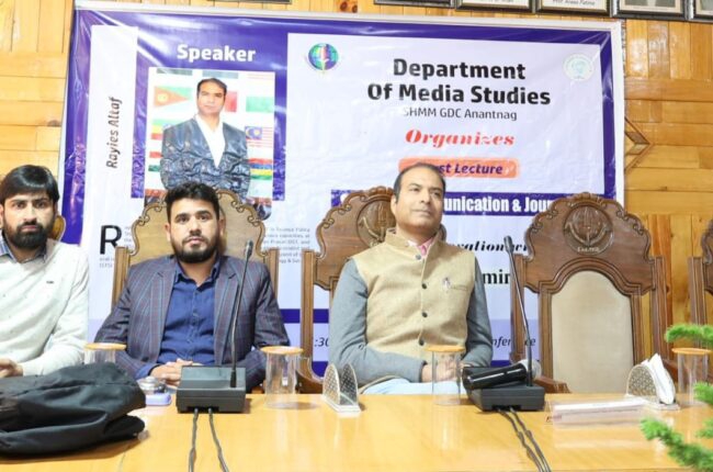 Anantnag, Oct 10: The Department of Media Studies, of SHMM Government Degree College Anantnag, in collaboration with Kashmir Convener organised a guest lecture on Science Communication and Journalism by Rayies Altaf, Science Communication Specialist and Public Relations Officer at the International Centre for Genetic Engineering and Biotechnology (ICGEB), New Delhi.