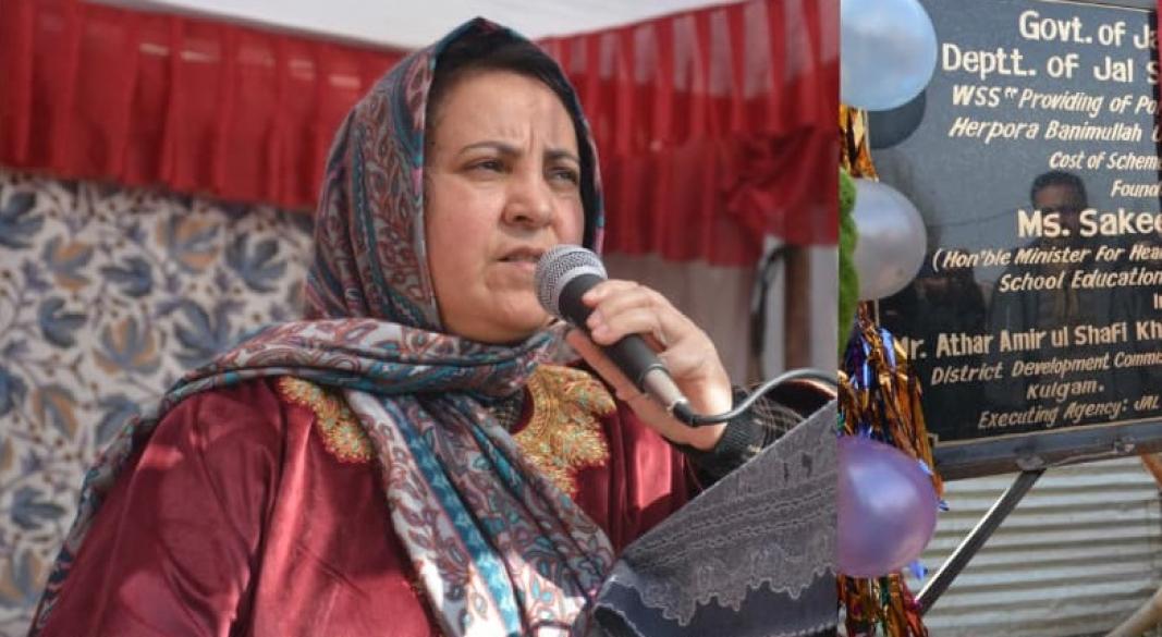 Srinagar, Jan 21: Minister for Health and Medical Education, Social Welfare and Education Sakeena Itoo, Wednesday visited Kulgam district and laid the foundation stone of Water Supply Scheme (WSS) at Herpora Banimullah.