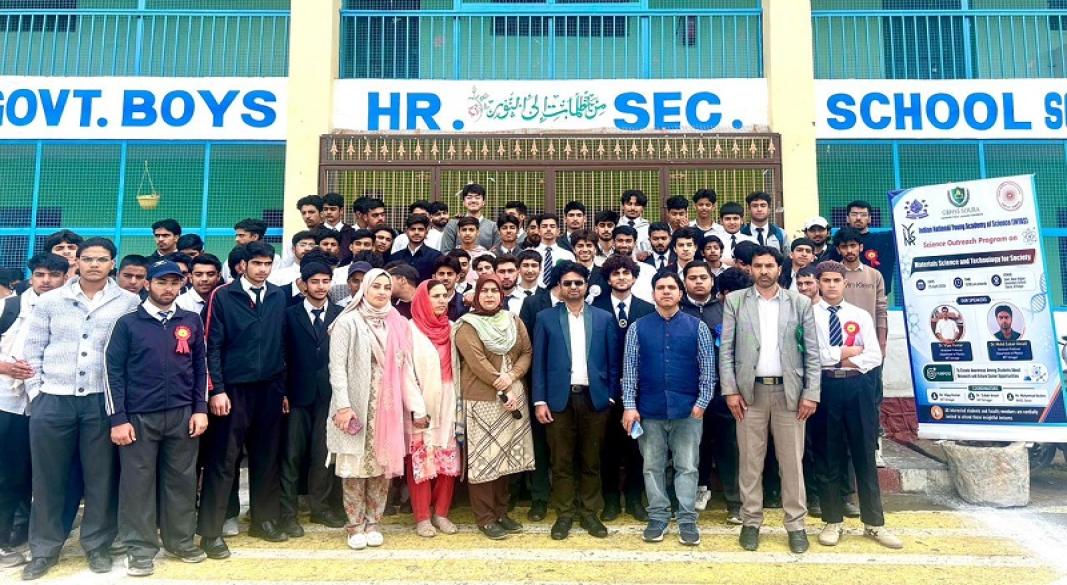 Srinagar, April 27: In a significant initiative to promote scientific temperament and innovation among young learners, the Indian National Young Academy of Science, in collaboration with National Institute of Technology (NIT) Srinagar Monday organized a Science Outreach Programme on “Materials Science and Technology for Society” at Government Boys Higher Secondary School, Soura.