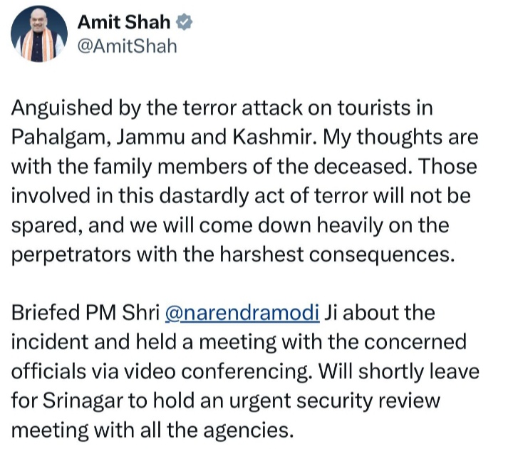 They said that Amit Shah also spoke to LG Manoj Sinha, and Chief Minister Omar Abdullah after the attack.