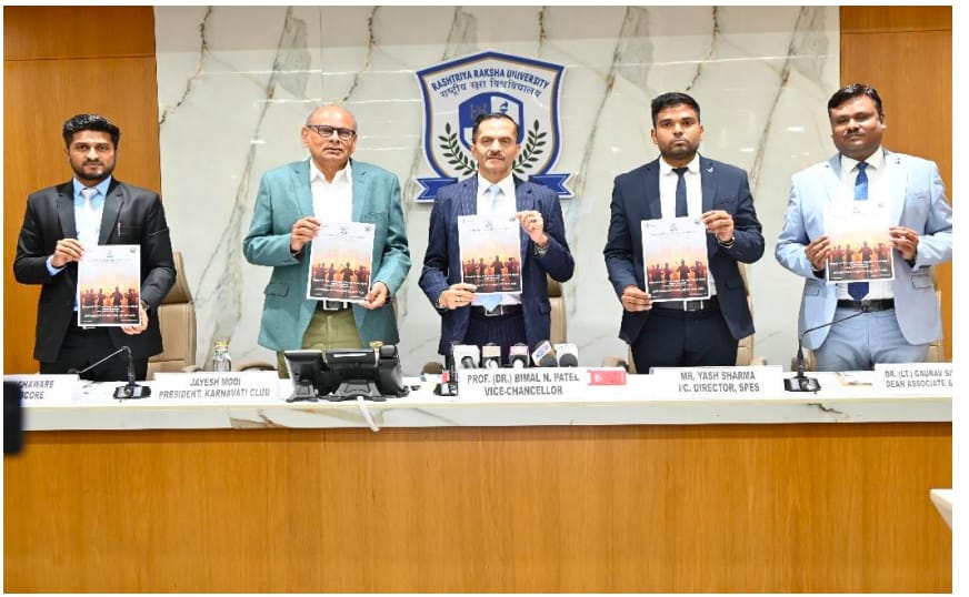 Ahmedabad, July 25: Rashtriya Raksha University (RRU), an institution of national importance under the Ministry of Home Affairs, on Wednesday announced a series of landmark initiatives aimed at reinforcing its position as a premier institution for national security education, global sports collaboration, and civilizational revival.