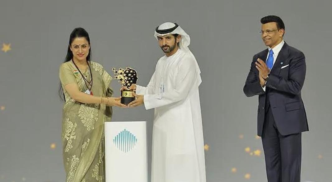 The award was presented by Sheikh Hamdan bin Mohammed bin Rashid AI Maktoum, Crown Prince of Dubai, Deputy Prime Minister, and Minister of Defence of the UAE in the presence of Sunny Varkey, Founder of the Varkey Foundation.