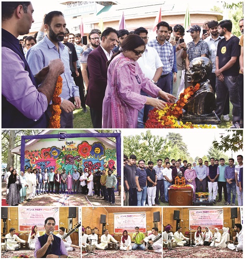 Various administrative officers and faculty members including Controller of Examinations KU Prof. Majid-uz-Zaman, Dean DSW KU Prof. Pervez Ahmed, Provost Boys KU Prof. Meraj Ahmed, Principal IMFA Dr. Habeeb Ullah, Cultural Officer KU Dr. Shahid Ali Khan, and wardens from different hostels as well as students joined the Vice-Chancellor in paying homage to Mahatma Gandhi.