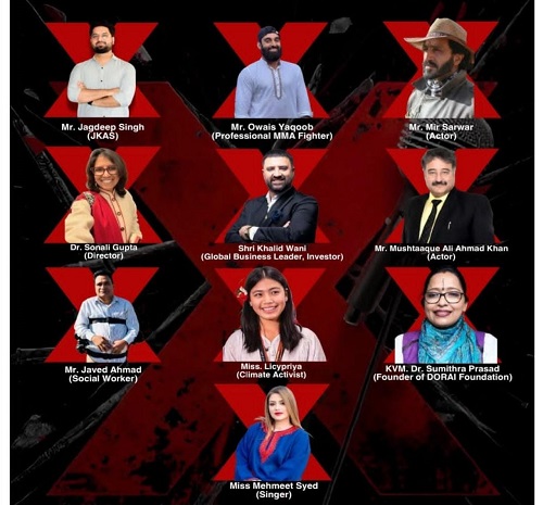 Distinguished speakers included Mr Jagdeep Singh (JKAS), professional MMA fighter Mr. Owais Yaqoob, acclaimed actor Mr. Mir Sarwar, filmmaker Dr. Sonali Gupta, global business leader and investor Shri Khalid Wani, veteran actor Mr. Mushtaaque Ali Ahmad Khan, and well-known social worker Mr. Javed Ahmad.