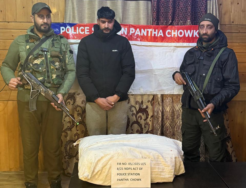 As per the official handout, based on credible information, a search operation was conducted by the Pantha Chowk Police Station at the residence of Irfan Ahmad Ganie, son of Manzoor Ahmad Ganie, a resident of Athawajan.