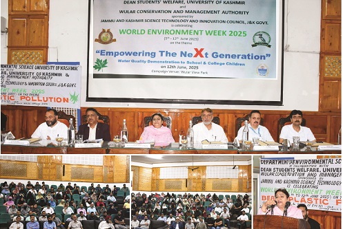 Srinagar, June 11: The department of Environental Science of University of Kashmir (KU), in collaboration with the Department of Students Welfare (DSW) and Wular Conservation and Management Authority (WCMA) organised a series of awareness events under the theme Empowering the Next Generation with a special focus on Beat Plastic Pollution.
