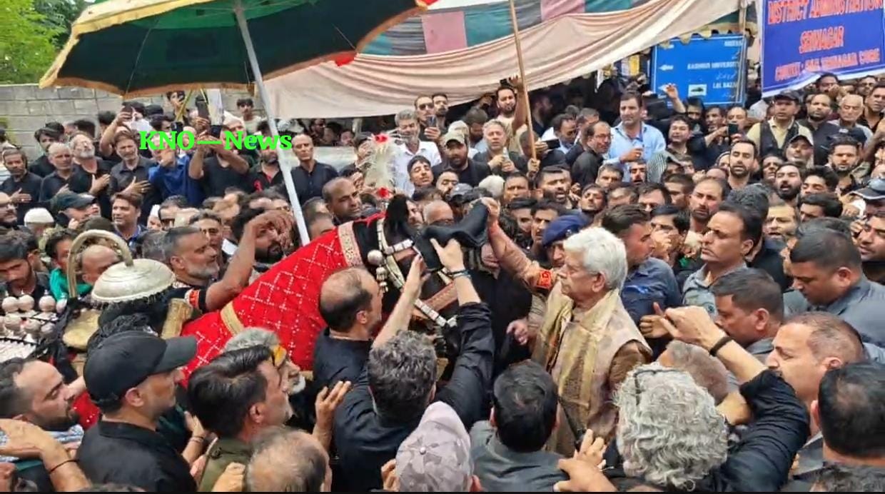 Srinagar, July 06: Jammu and Kashmir Lieutenant Governor Manoj Sinha on Sunday joined thousands of Shia mourners at the traditional Zuljanah procession here on the solemn occasion of Youm-e-Ashura.