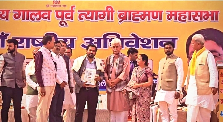 Jammu, Feb 09: The J&K Lieutenant Governor Manoj Sinha on Sunday addressed the 46th National Convention of All India Galav Purva Tyagi Brahmin Mahasabha at Dr Karan Singh Inter College, Agra.